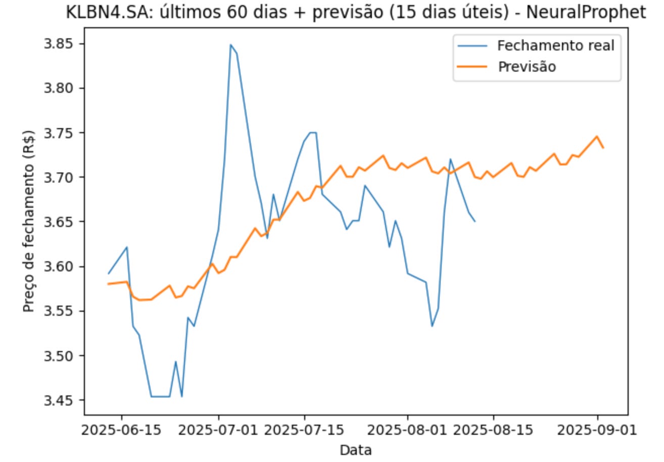 Nesses dois artigos, falamos sobre as perdas de Isaac Newton, apesar de sua inteligência e mostramos os resultados de algoritmos avançados e recentes de séries temporais, usados para tentar prever o preço das ações KLBN4, comparando os resultados reais num período determinado. Dos três algoritmos, o Prophet foi o que se saiu melhor, com menor erro absoluto e quadrático, além de um R² positivo, indicando que explica uma parte significativa da variação da série (apesar de ainda não ser um ajuste perfeito). O LSTM teve erro relativamente baixo (RMSE e MAE), mas o R² negativo muito forte mostra que não conseguiu capturar a variabilidade dos dados - teve um desempenho pior que uma simples média. O Neural Prophet, apesar da sua sofisticação, foi o pior desempenho geral: maiores erros (RMSE e MAE) e R² negativo, mostrando que o ajuste ficou abaixo do esperado.